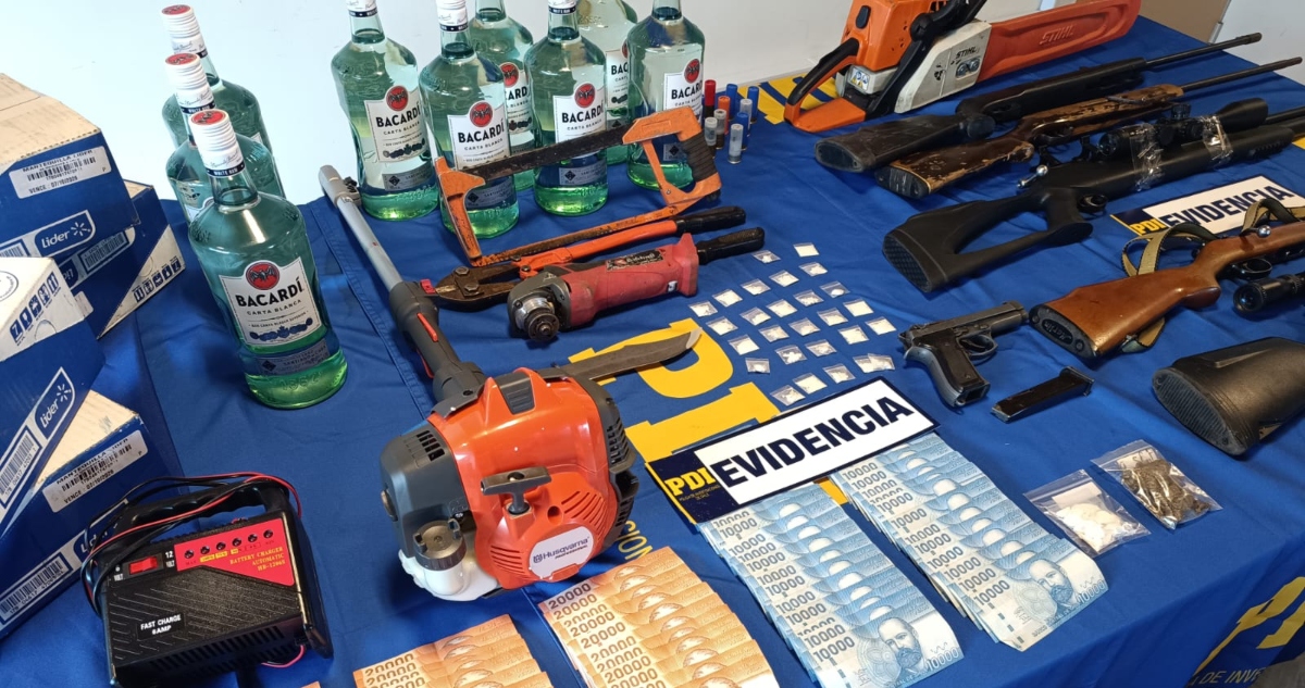 El operativo, que incluyó órdenes judiciales de entrada y registro, permitió la incautación de armas de fuego, municiones, drogas (cannabis y clorhidrato de cocaína), tres vehículos, dinero en efectivo, teléfonos celulares, joyas, herramientas, equipos tecnológicos y una vasta cantidad de productos de consumo masivo, incluyendo alimentos de exportación. El subprefecto Diego Badilla, de la PDI Mulchén, detalló que los camioneros eran despojados de sus cargas, que incluían abarrotes, leche, útiles de aseo y licores, con un valor total estimado en más de 50 millones de pesos.